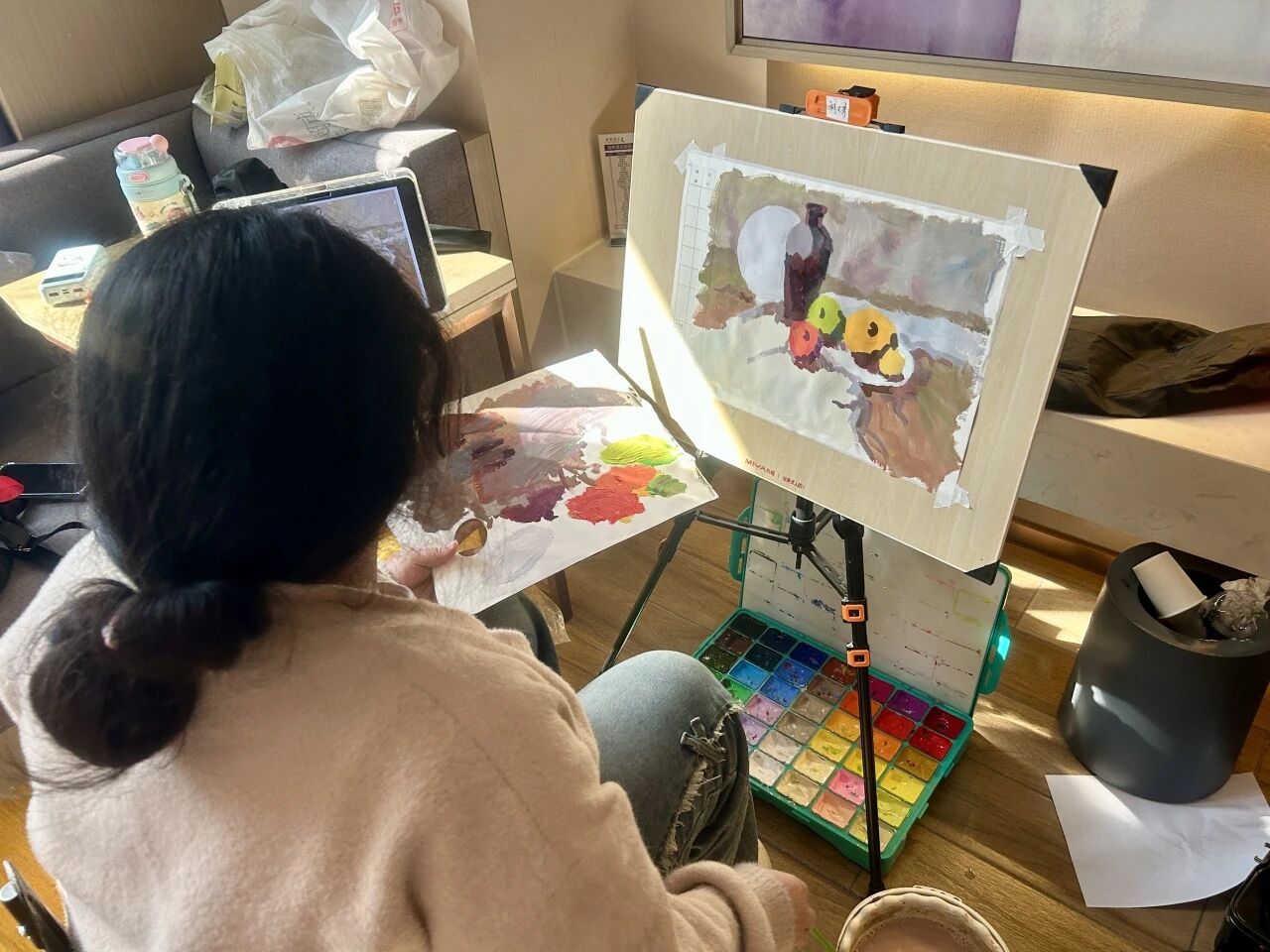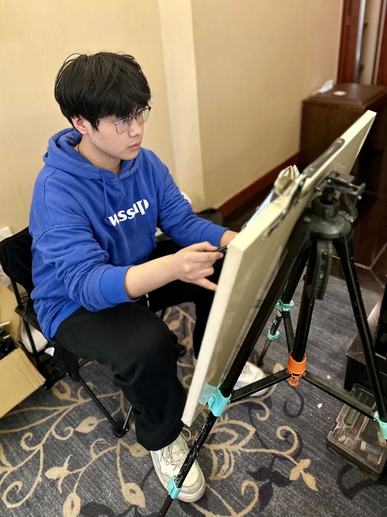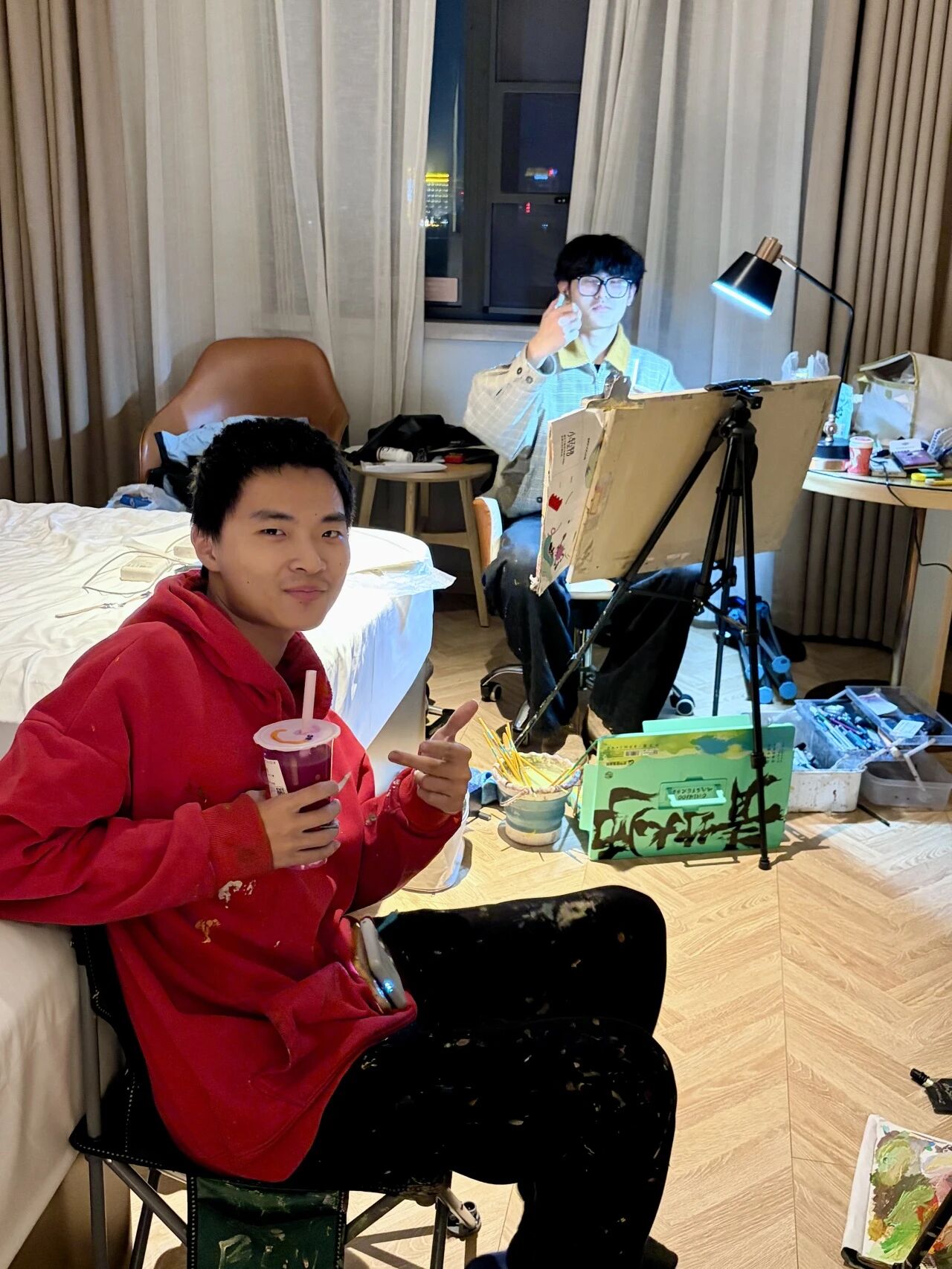 清木画室的老师们带领学子出征奔赴联考。酒店虽然拥挤,但大家摆上画架就进入了学习模式。考前的每一分钟都很宝贵,临阵磨枪不亮也光。