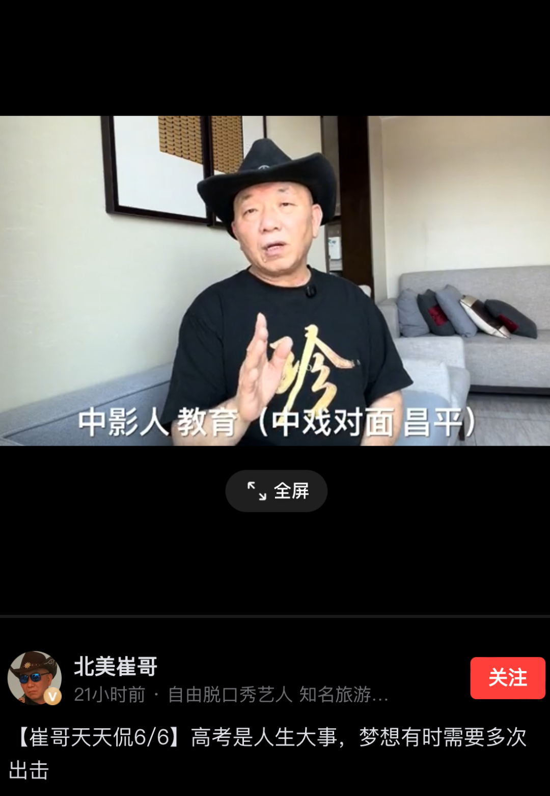 千万粉丝大V“北美崔哥”莅临中影人,为全国考生送上高考祝福!