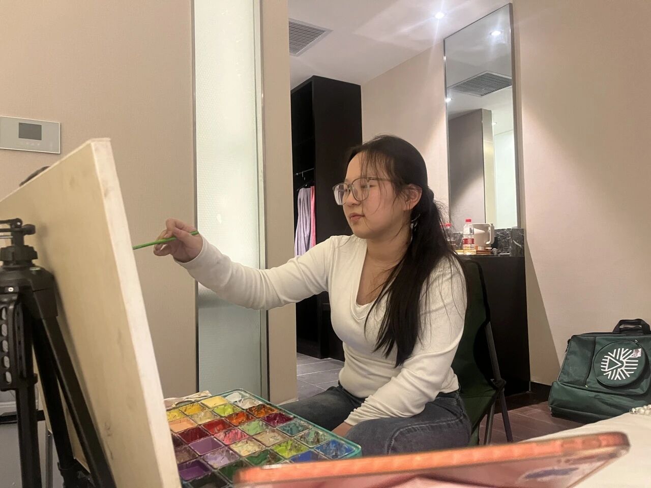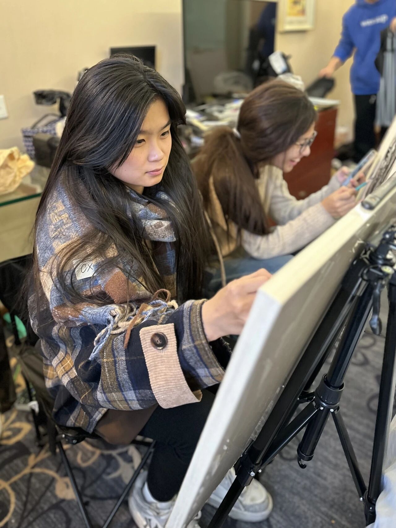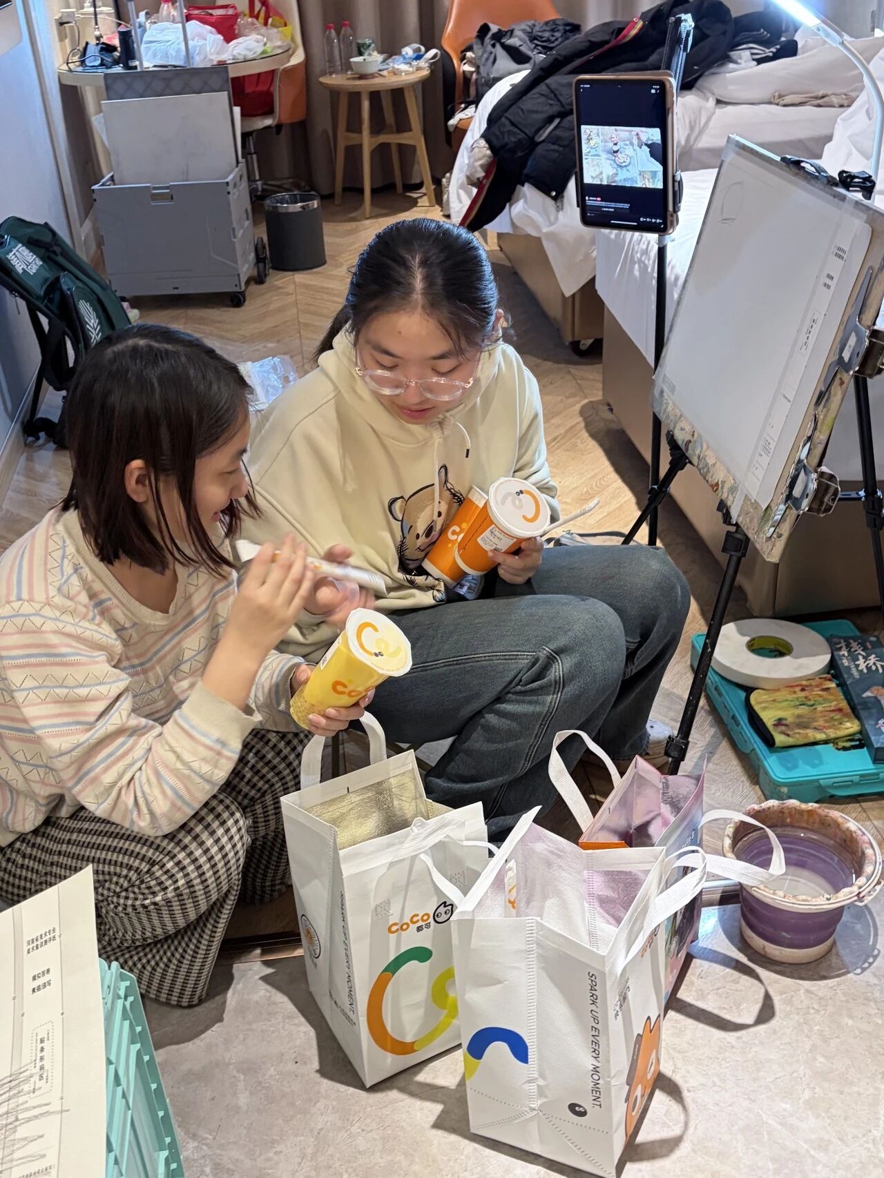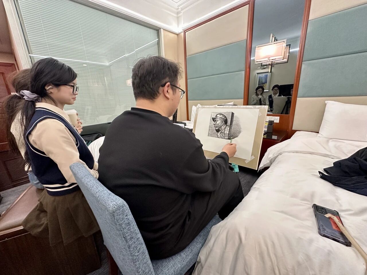 清木画室的老师们带领学子出征奔赴联考。酒店虽然拥挤,但大家摆上画架就进入了学习模式。考前的每一分钟都很宝贵,临阵磨枪不亮也光。